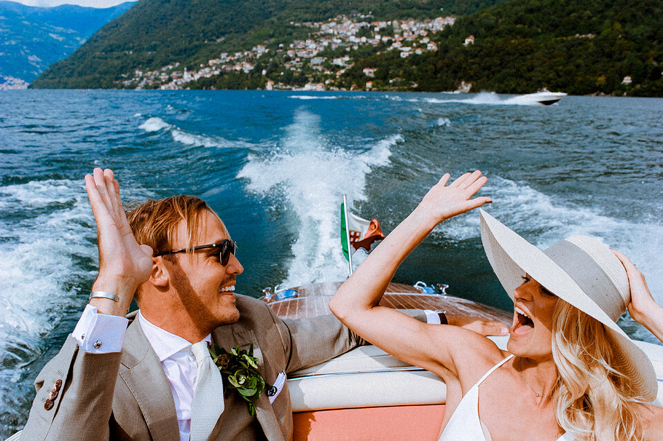 One of the most cinematic moments I photograph is a couple’s arrival by classic wooden Riva boat. The gentle splash of water, the reflection of centuries-old villas on the calm surface, the Alps rising in the background — these are the images that make Lake Como weddings truly unforgettable. Many venues, including Villa del Balbianello and Villa Pliniana, are accessible only by boat, making the arrival itself part of the story.